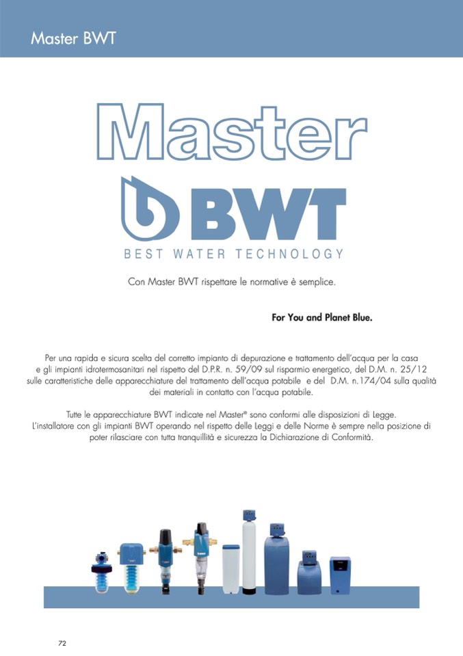 Tutte le apparecchiature BWT indicate nel Master