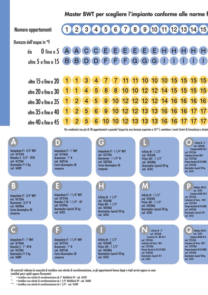 Per condomini con più di 50 appartamenti o quando l’acqua ha una durezza superiore a 45° f, contattare i nostri Centri di Consulenza e Assiste