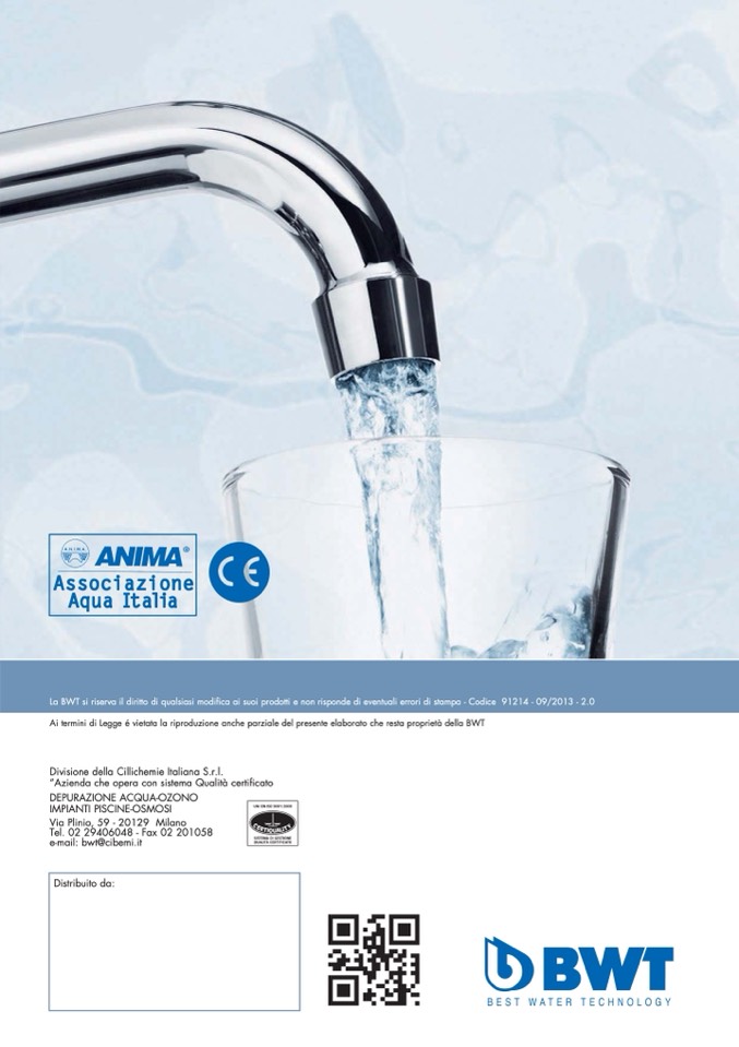 La BWT si riserva il diritto di qualsiasi modifica ai suoi prodotti e non risponde di eventuali errori di stampa - Codice 91214 - 09/2013 - 2.0