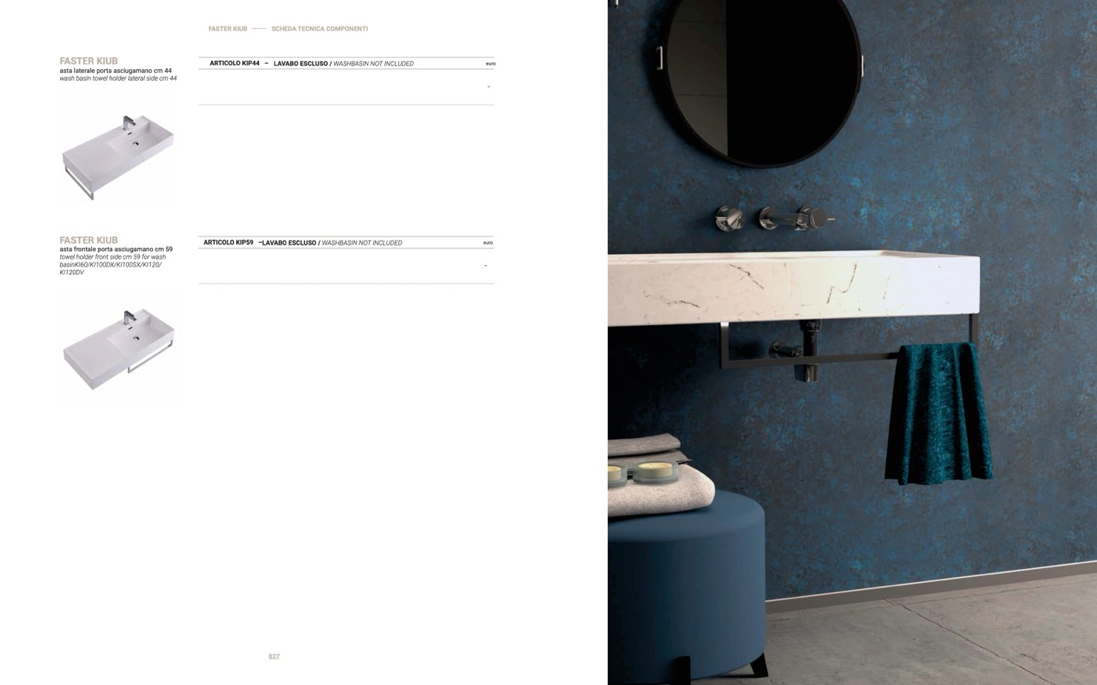 ARTICOLO KIP44 – LAVABO ESCLUSO / WASHBASIN NOT INCLUDED