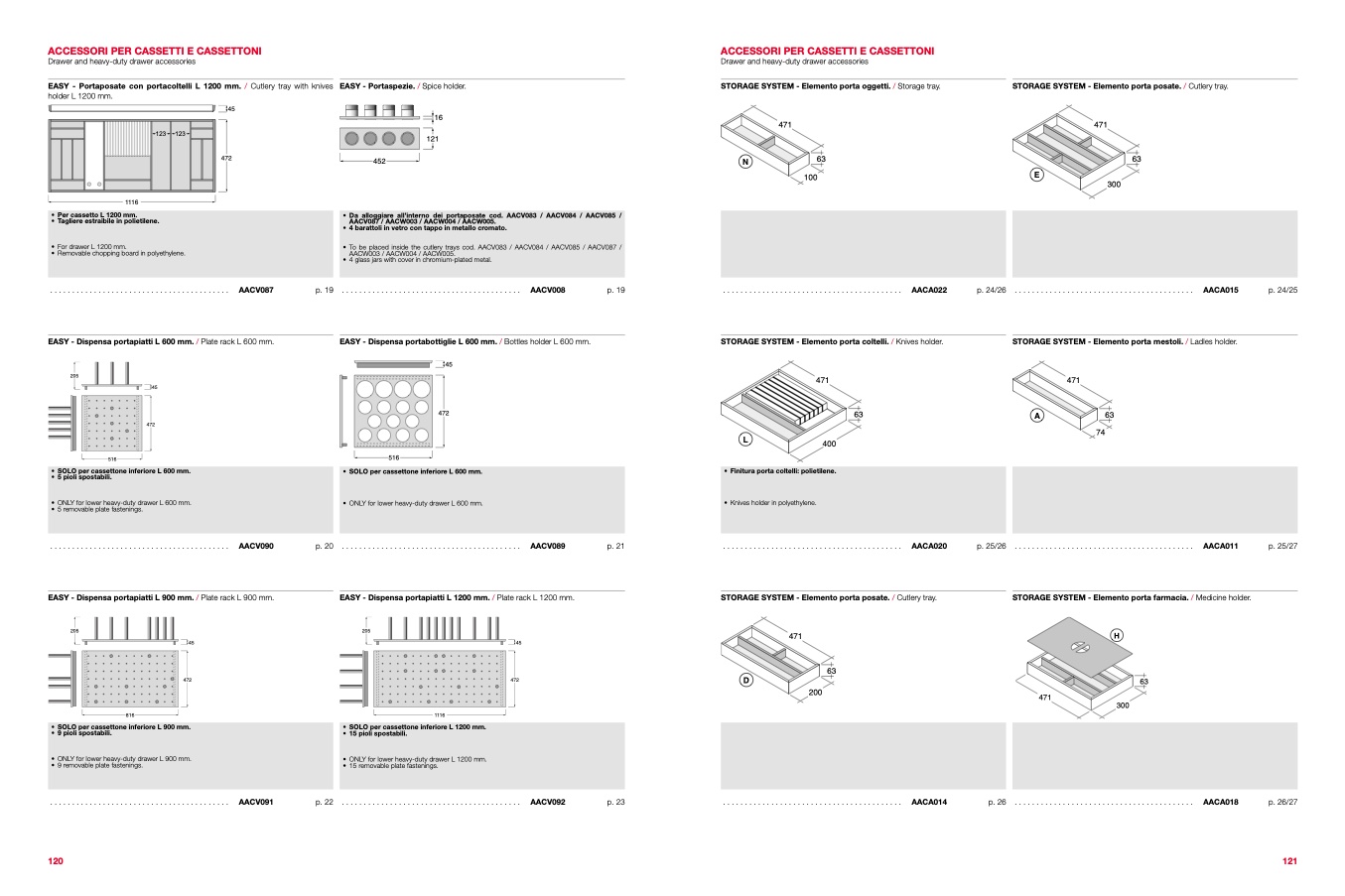 • To be placed inside the cutlery trays cod. AACV083 / AACV084 / AACV085 / AACV087 /