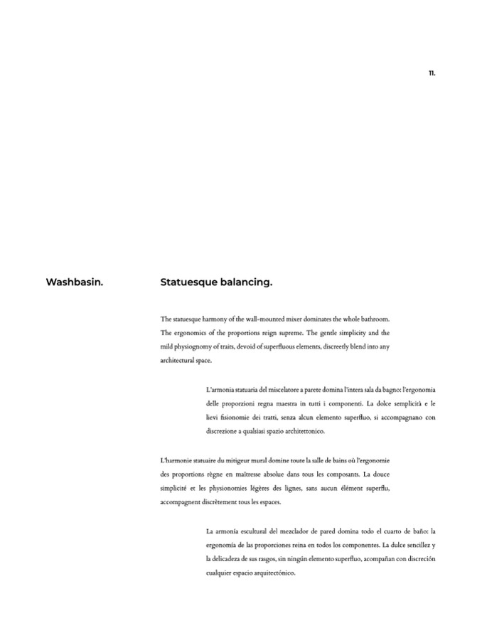 L’armonia statuaria del miscelatore a parete domina l’intera sala da bagno: l’ergonomia