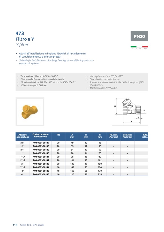 • Strainer in stainless steel AISI 304: 500 micron from 3/8" to