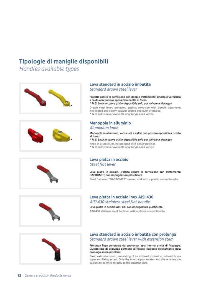 * N.B. Leva in colore giallo disponibile solo per valvole a sfera gas.