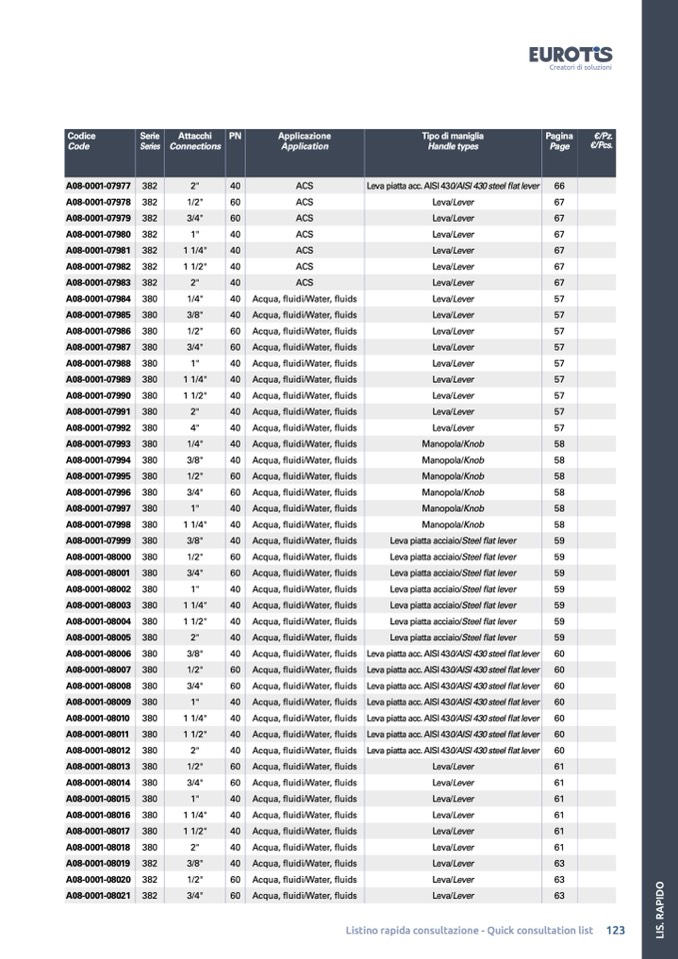 Listino rapida consultazione - Quick consultation list 123