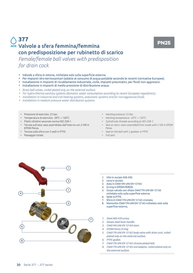 5. CW617N UNI EN 12165 body valve with drain cock, nickel-