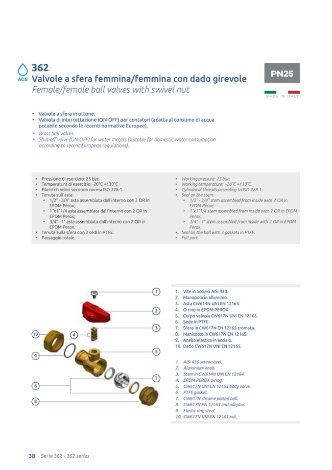• Valvola di intercettazione (ON-OFF) per contatori (adatta al consumo di acqua