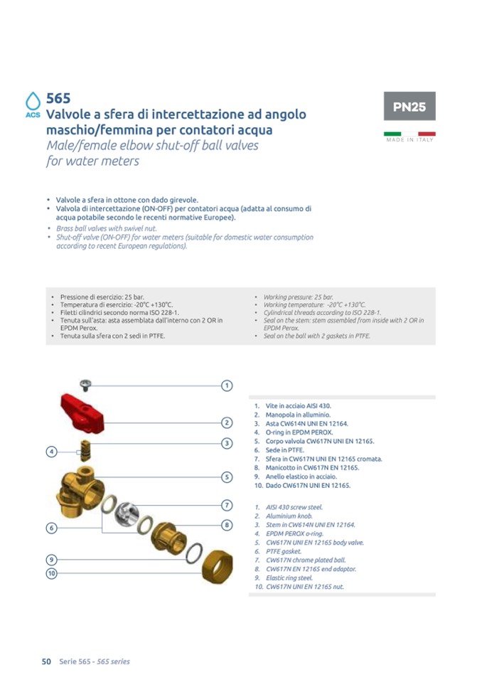 5. CW617N UNI EN 12165 body valve.