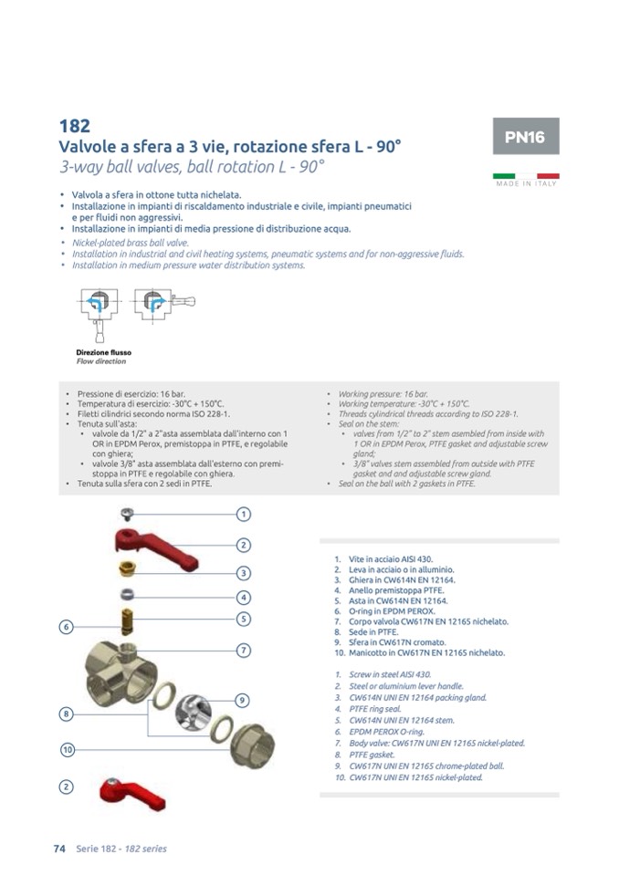 7. Body valve: CW617N UNI EN 12165 nickel-plated.