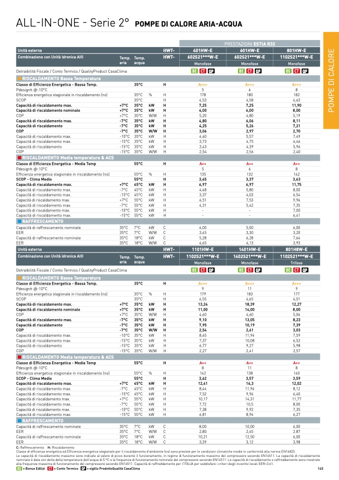 Le capacità di riscaldamento massime sono indicate al valore di picco durante il funzionamento, in regime di funzionamento massimo del compressore secondo EN14511. La capacità di riscaldament