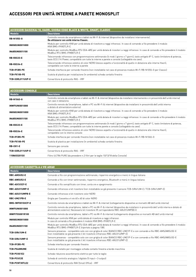 ACCESSORI PER UNITÀ INTERNE A PARETE MONOSPLIT