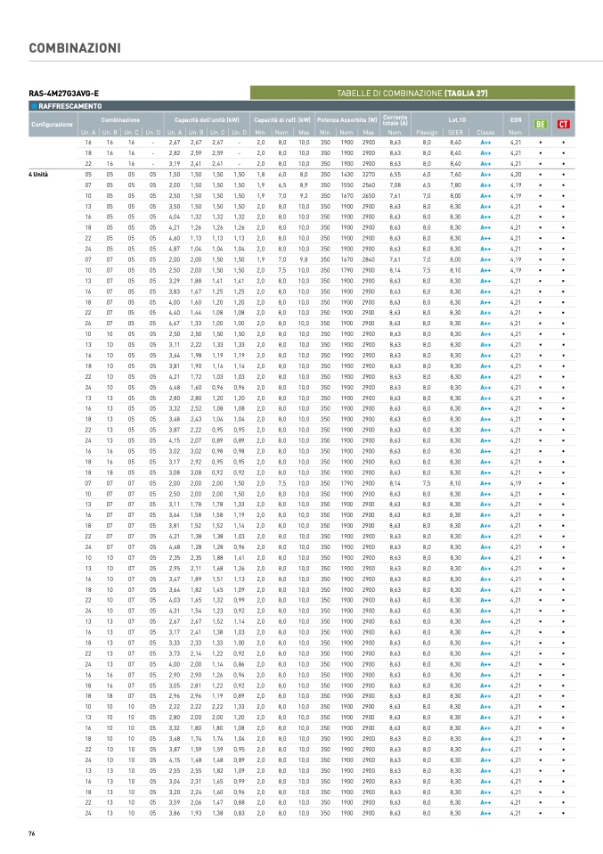 TABELLE DI COMBINAZIONE (TAGLIA 27