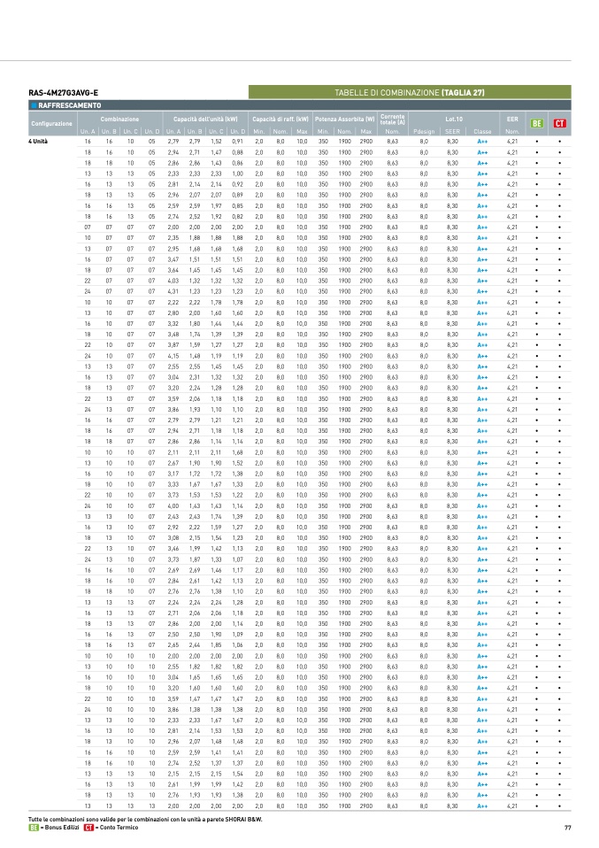 TABELLE DI COMBINAZIONE (TAGLIA 27)