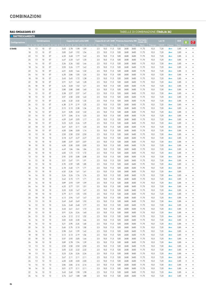 TABELLE DI COMBINAZIONE (TAGLIA 34)