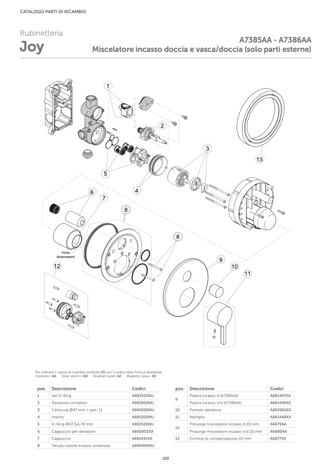 Per ordinare il pezzo di ricambio sostituire XX con il codice della finitura desiderata