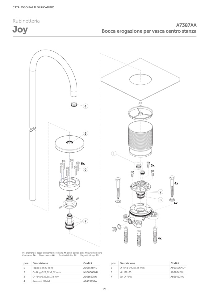 Per ordinare il pezzo di ricambio sostituire XX con il codice della finitura desiderata