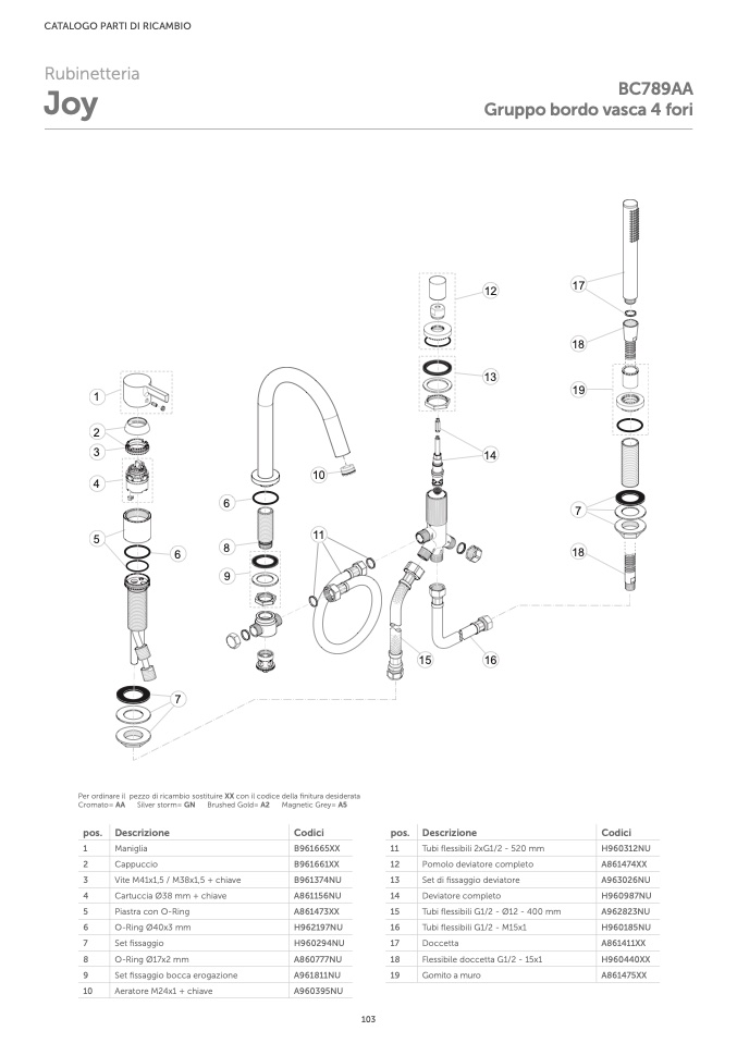 Per ordinare il pezzo di ricambio sostituire XX con il codice della finitura desiderata