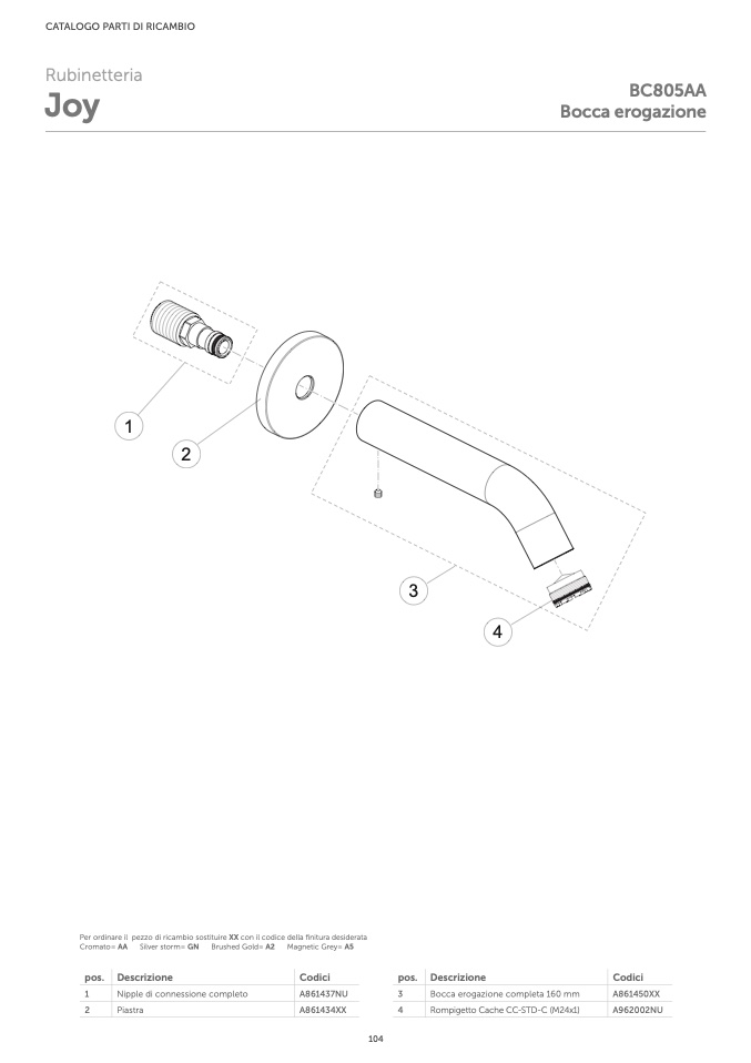 Per ordinare il pezzo di ricambio sostituire XX con il codice della finitura desiderata