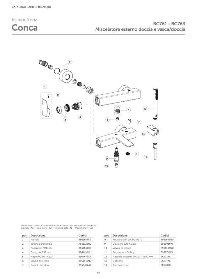 Per ordinare il pezzo di ricambio sostituire XX con il codice della finitura desiderata