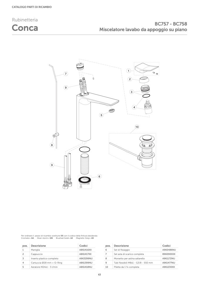 Per ordinare il pezzo di ricambio sostituire XX con il codice della finitura desiderata