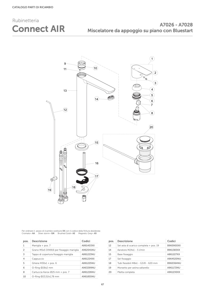 Per ordinare il pezzo di ricambio sostituire XX con il codice della finitura desiderata