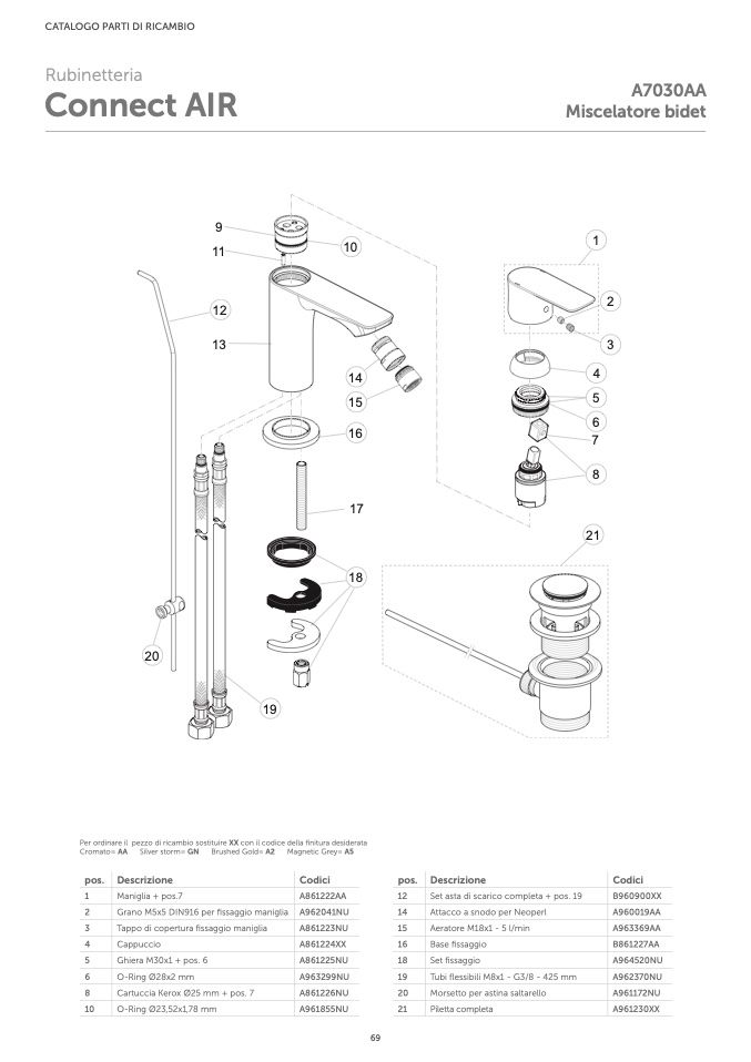Per ordinare il pezzo di ricambio sostituire XX con il codice della finitura desiderata