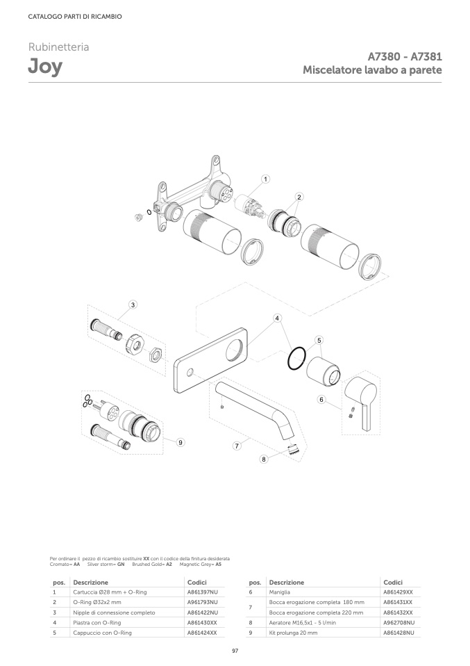 Per ordinare il pezzo di ricambio sostituire XX con il codice della finitura desiderata