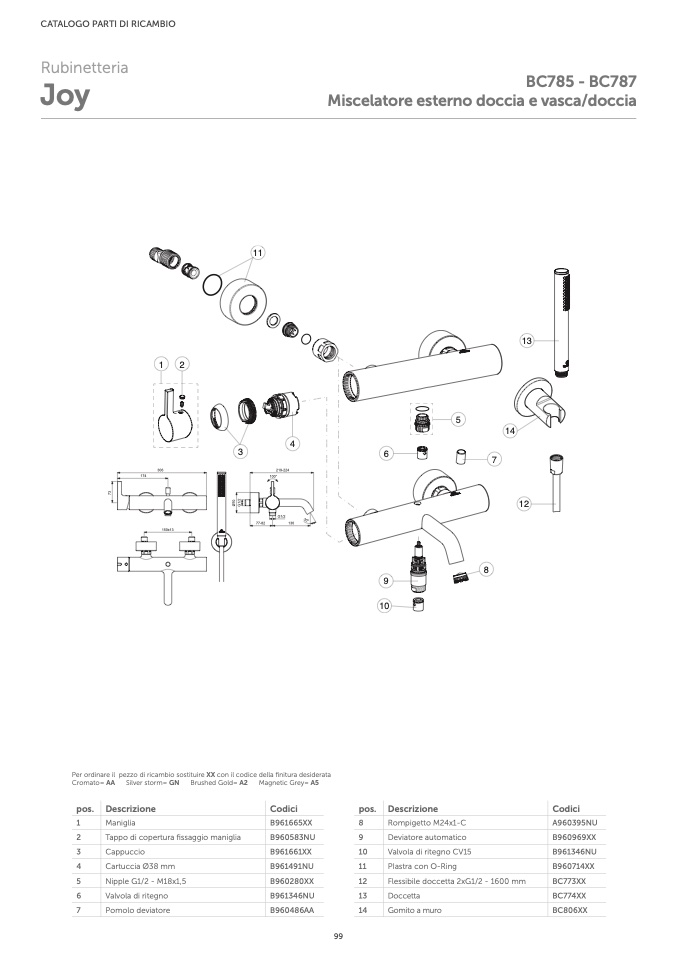 Per ordinare il pezzo di ricambio sostituire XX con il codice della finitura desiderata