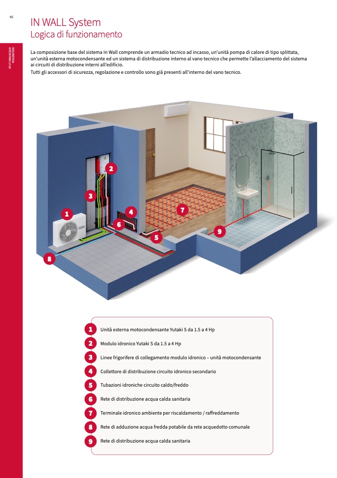 à esterna motocondensante ed un sistema di distribuzione interno al vano tecnico che permette l’allacciamento del sistema