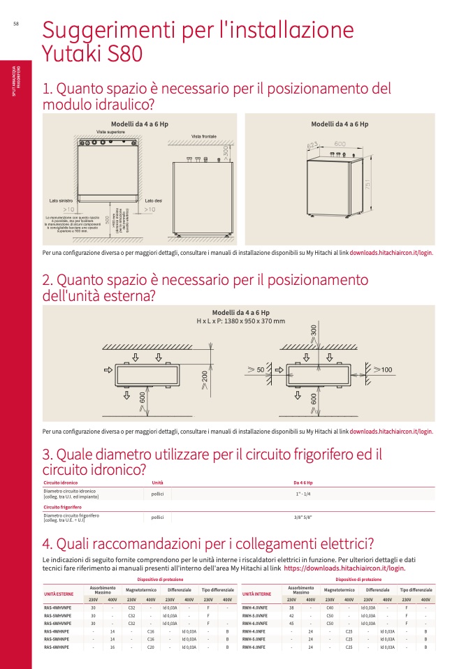 Per una configurazione diversa o per maggiori dettagli, consultare i manuali di installazione disponibili su My Hitachi al link downloads.hitachiaircon.it/login.
