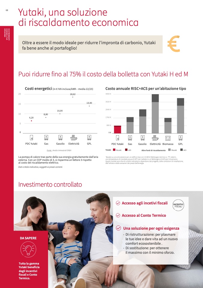 una temperatura di mandata acqua di 55°C per radiatori e un fabbisogno di ACS per 3-4 persone.