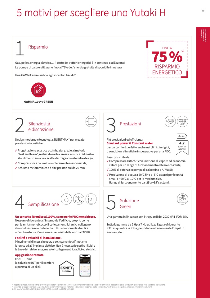 ✓ Produzione di acqua a 60°C fino a -5°C esterni per le unità