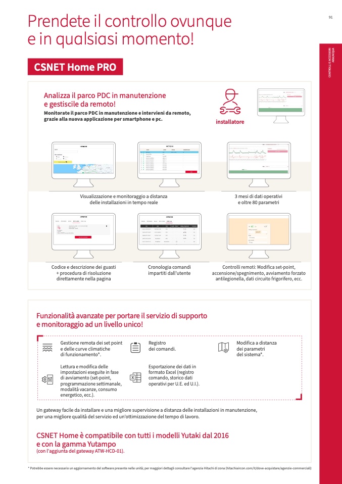 * Potrebbe essere necessario un aggiornamento del software presente nelle unità; per maggiori dettagli consultare l'agenzia Hitachi di zona (hitachiaircon.com/it/dove-acquistare/agenzie-commerciali)
