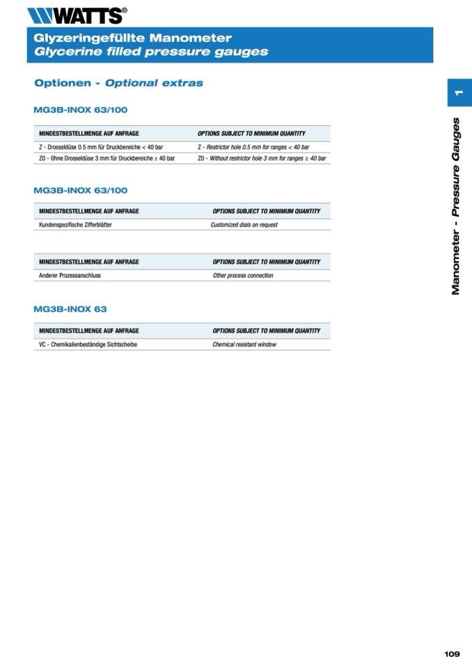 Z - Restrictor hole 0.5 mm for ranges < 40 bar