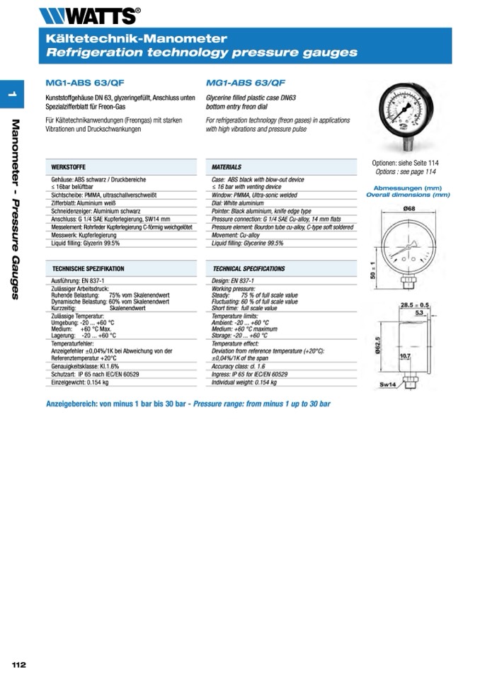 Anzeigebereich: von minus 1 bar bis 30 bar - Pressure range: from minus 1 up to 30 bar