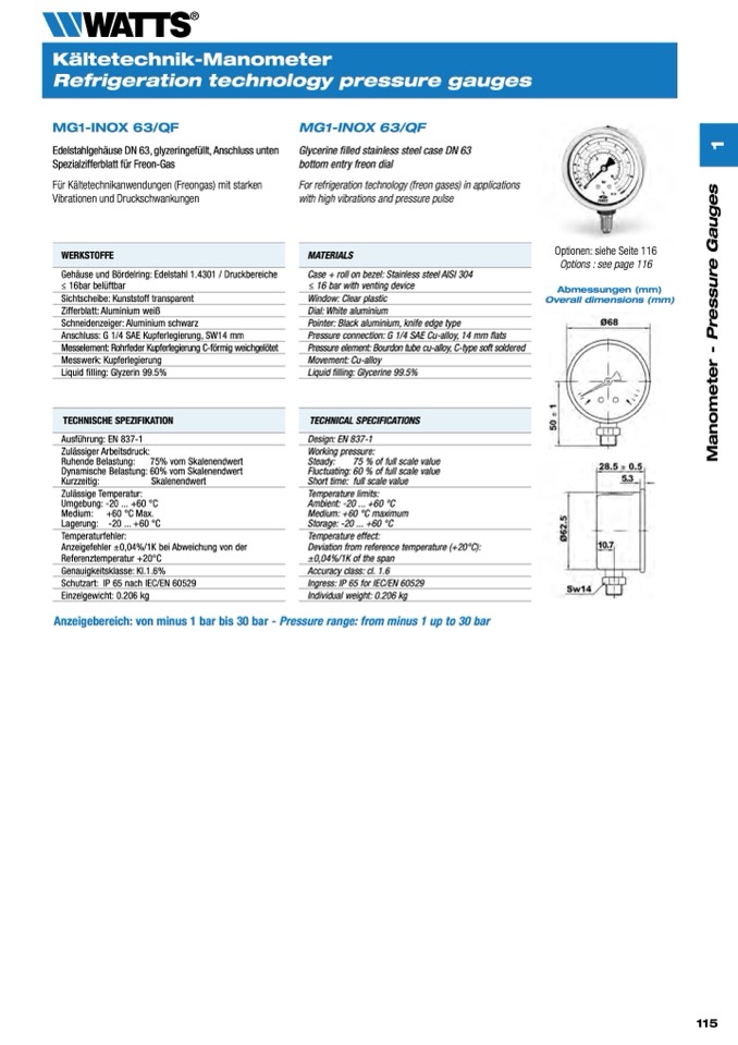 Anzeigebereich: von minus 1 bar bis 30 bar - Pressure range: from minus 1 up to 30 bar