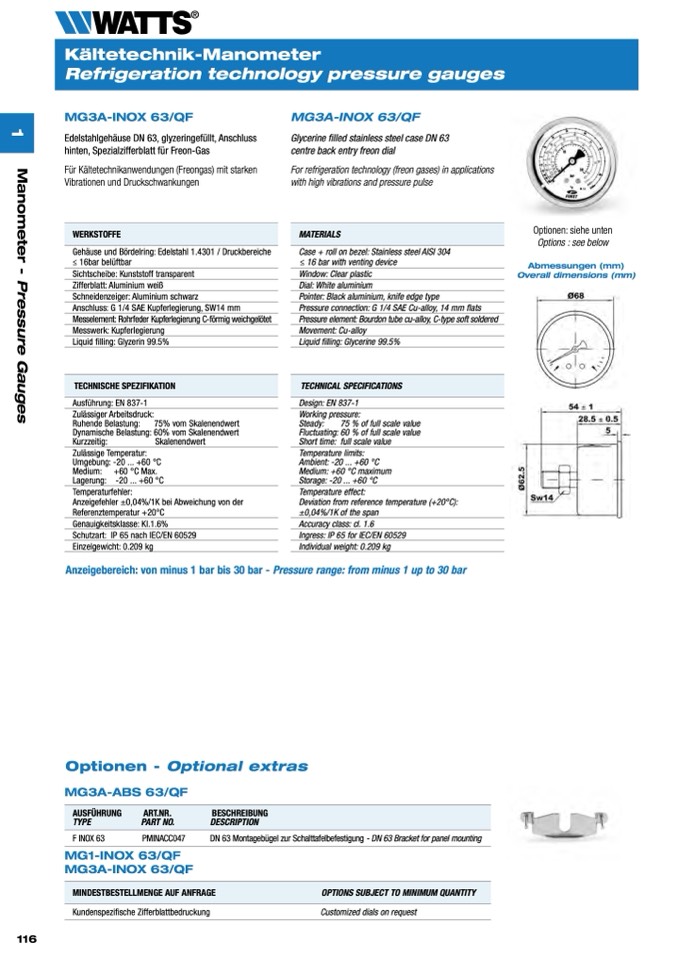 Gehäuse und Bördelring: Edelstahl 1.4301 / Druckbereiche