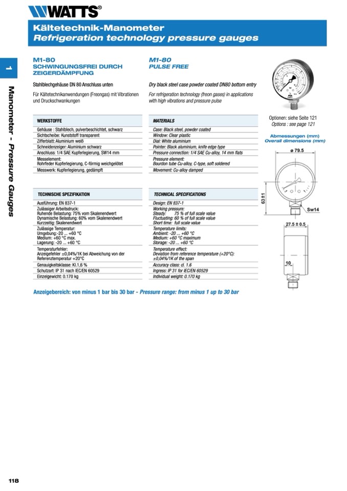 Anzeigebereich: von minus 1 bar bis 30 bar - Pressure range: from minus 1 up to 30 bar