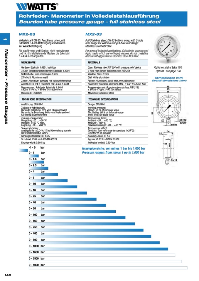 Anzeigebereiche: von minus 1 bar bis 1.000 bar