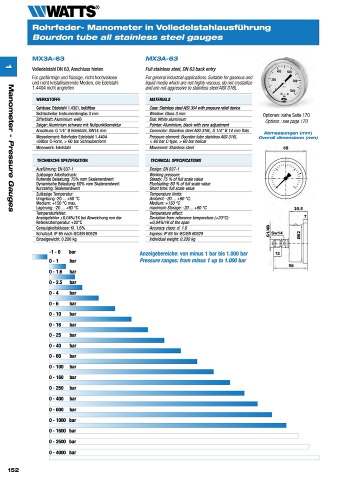 Anzeigebereiche: von minus 1 bar bis 1.000 bar