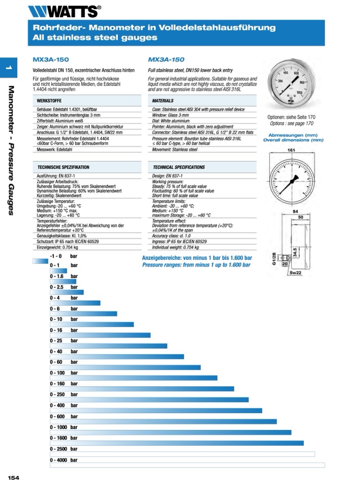 Anzeigebereiche: von minus 1 bar bis 1.600 bar