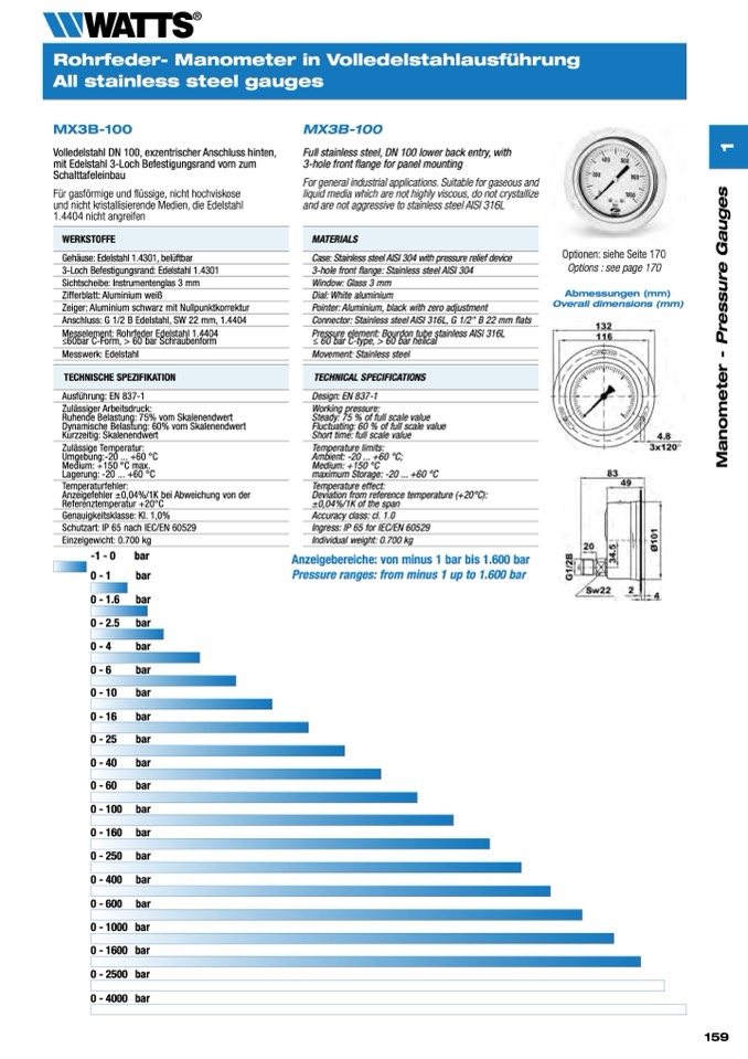 Anzeigebereiche: von minus 1 bar bis 1.600 bar