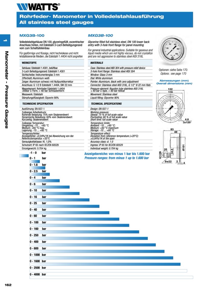 Anzeigebereiche: von minus 1 bar bis 1.600 bar