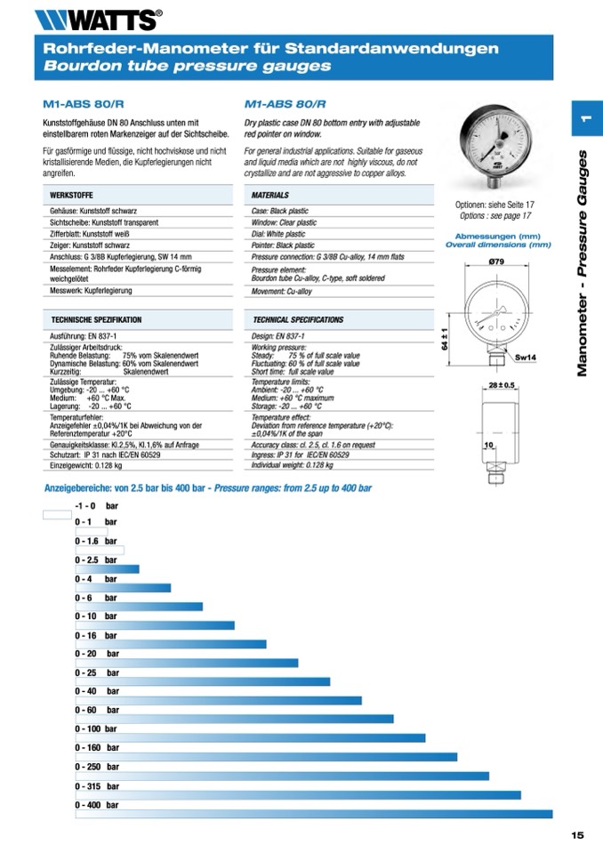 Anzeigebereiche: von 2.5 bar bis 400 bar - Pressure ranges: from 2.5 up to 400 bar