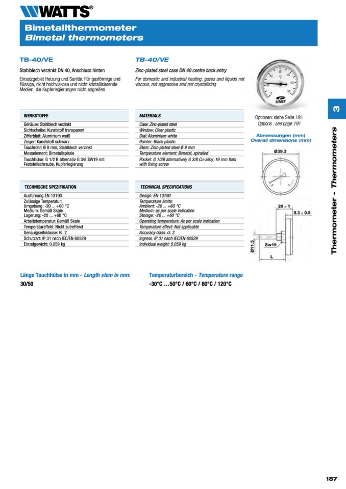 Länge Tauchhülse in mm - Length stem in mm: