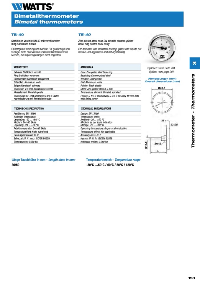 -30°C ...50°C / 60°C / 80°C / 120°C