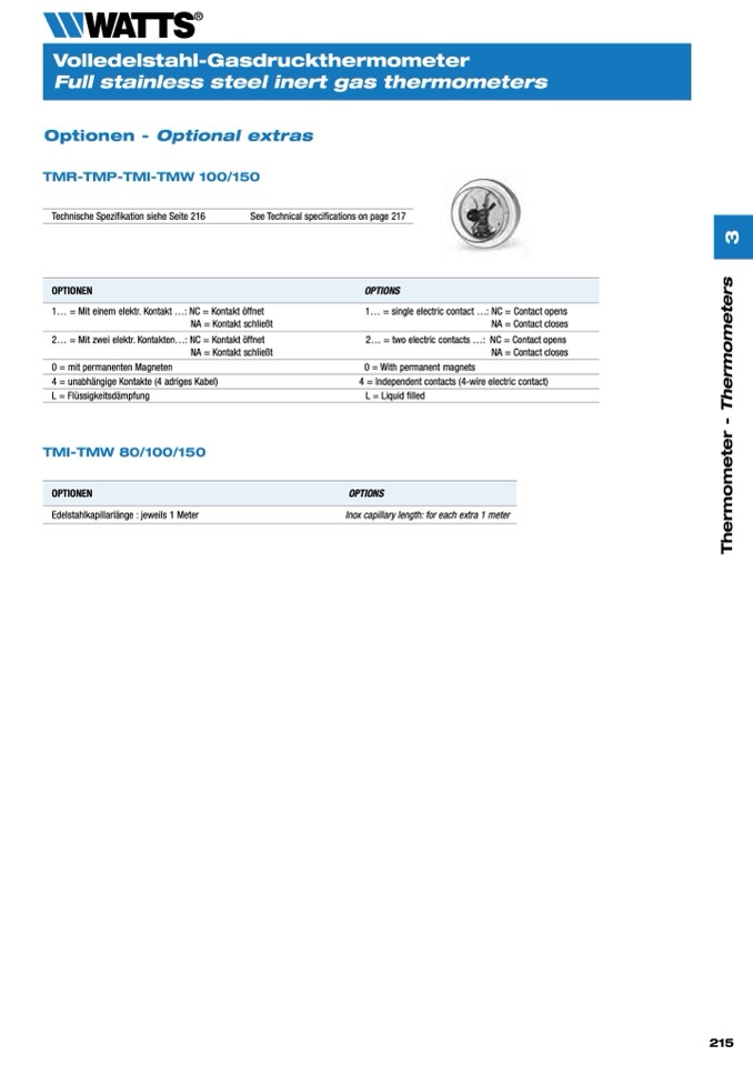 2... = Mit zwei elektr. Kontakten...: NC = Kontakt öffnet