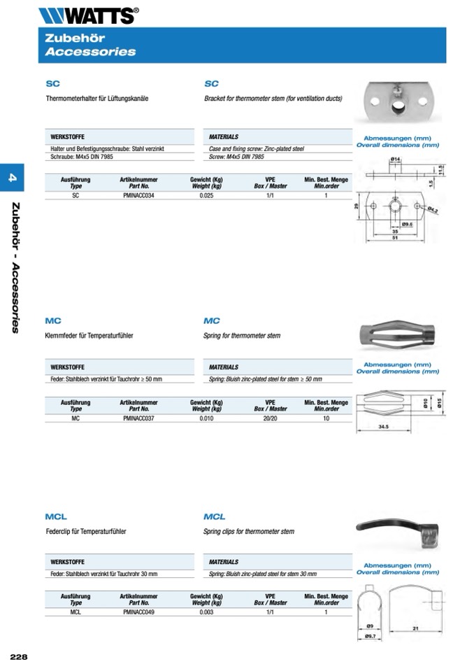 Spring: Bluish zinc-plated steel for stem ≥ 50 mm