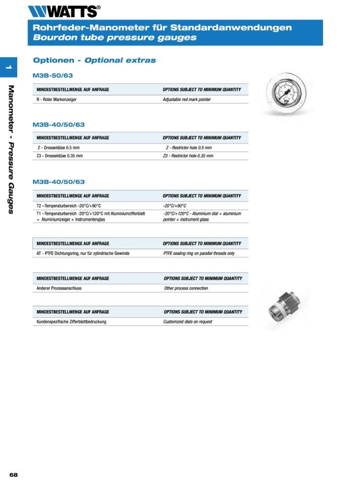 T1 –Temperaturbereich -20°C/+120°C mit Aluminiumzifferblatt