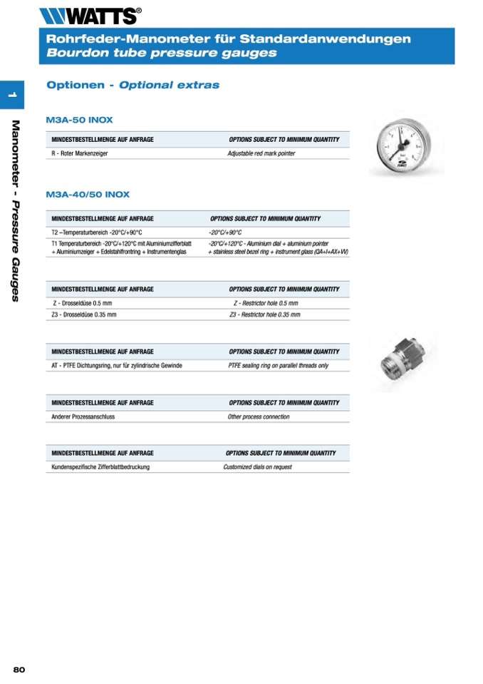 T1 Temperaturbereich -20°C/+120°C mit Aluminiumzifferblatt